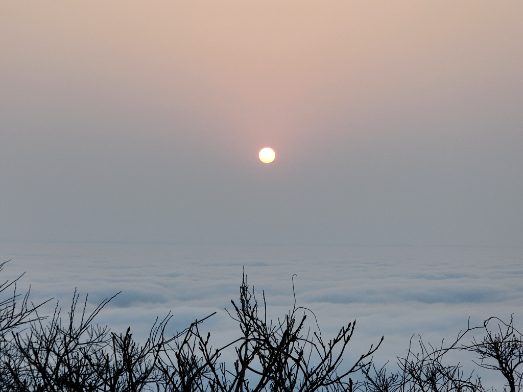 06:45 해무 위로 해가 떠오르는 것을 봉화대에서 바라봅니다.